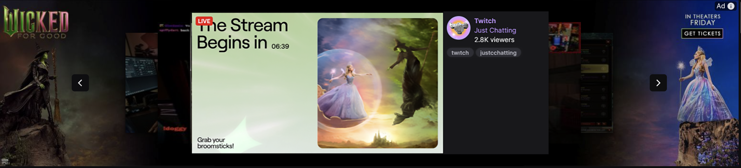 To announce the Together for Good partnership with Wicked: For Good, Twitch shared the stage with a sponsoring IP in a way that has never been done before.
